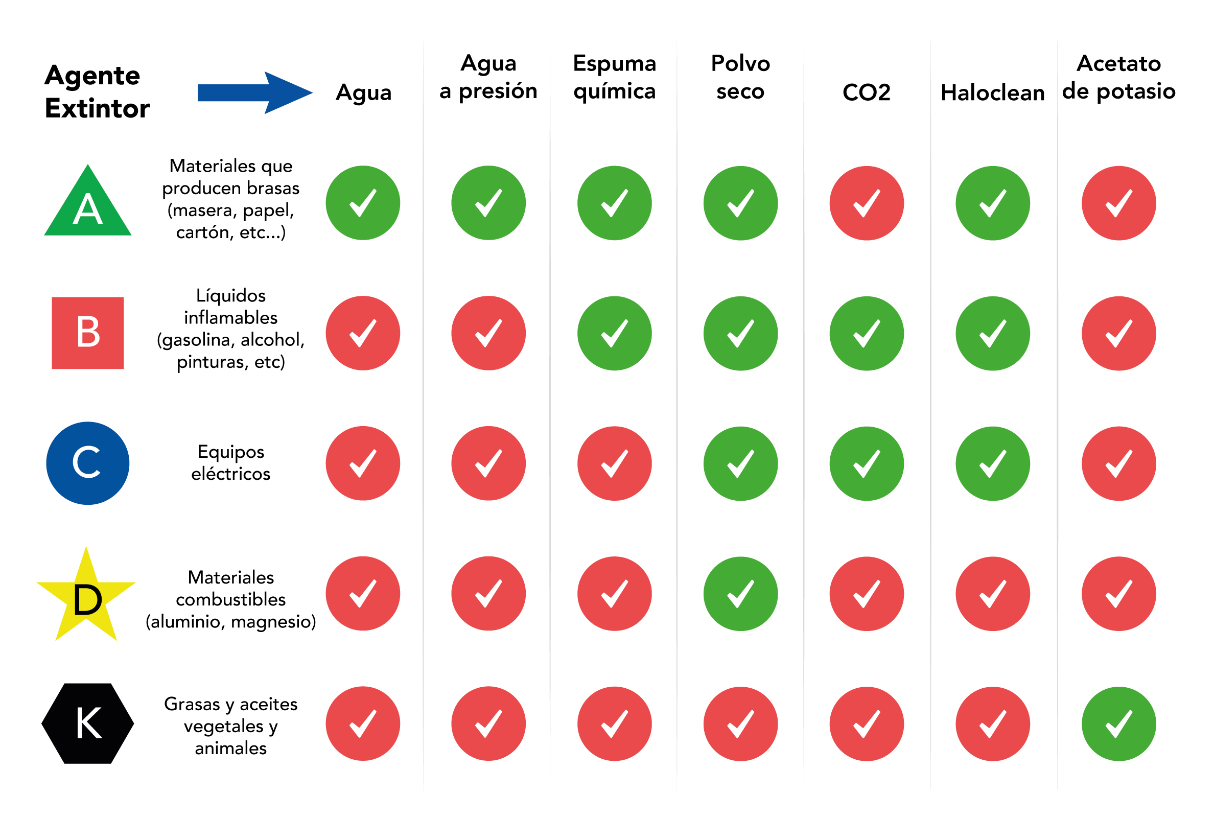 - Extintores para metales: fuego de clase D.