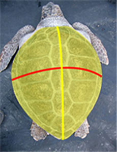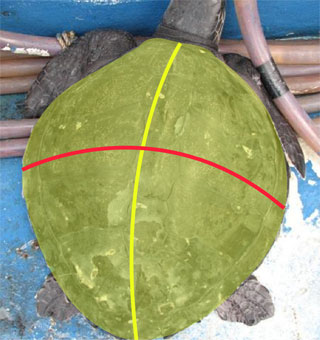 Forma: caparazón es redondeado y las medidas tanto vertical como horizontal son de longitud similar.