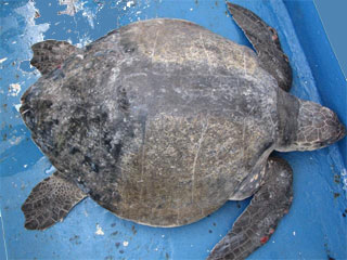 Individuos adultos: la piel y el carapacho se tiende a colocar en un color gris u oliváceo en los costados de la parte interior y con partes en color gris más oscura o negra en la parte dorsal.
