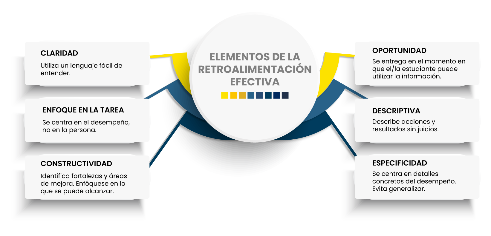Un proceso de retroalimentación bien implementado fomenta un ambiente de confianza y apoyo, donde el/la estudiante se siente acompañado(a) en su proceso de aprendizaje.