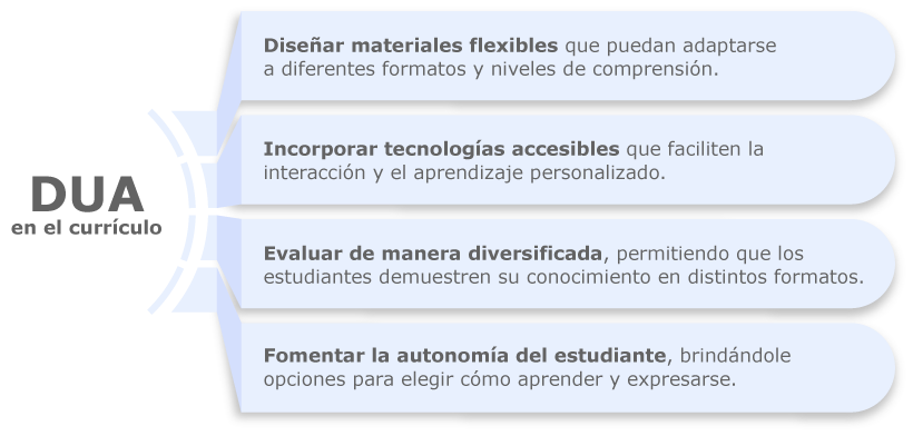 El DUA se integra en el currículo mediante estrategias que garantizan la accesibilidad y la equidad en la enseñanza. Para ello, se recomienda: