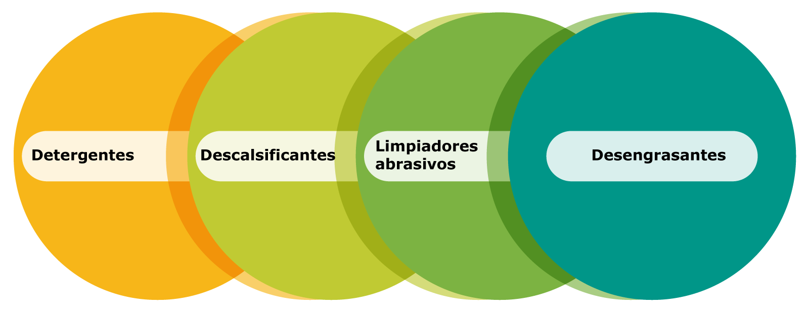 Detergentes, Descalsificantes, Limpiadores abrasivos, DesengrasantesEl factor clave para seleccionar el producto químico es el tipo de suciedad por remover. Para una elección acertada y su uso seguro, es indispensable consultar a la empresa proveedora, para elegir los limpiadores apropiados para su establecimiento, así como las instrucciones para su aplicación.