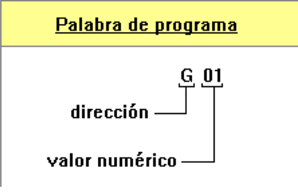 El lenguaje para elaborar los programas para equipos de CNC, está compuesto por una serie de letras y números, donde una cantidad determinada de ellas, formaran un bloque, y una serie sucesiva de bloques completaran un programa. Esta serie de palabras corresponderán a una secuencia lógica de trabajo (programa).