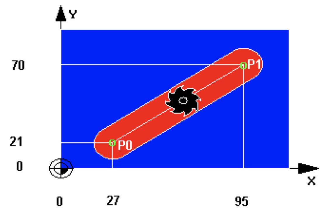 Ejemplo: La herramienta se mueve en línea recta de (X0 Y0) a (X100 Y50).