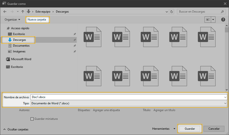 4. Una vez escogido el lugar donde se va a guardar el documento, haga clic en Guardar.