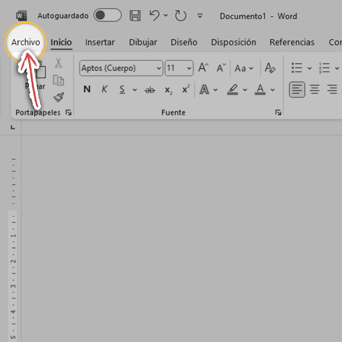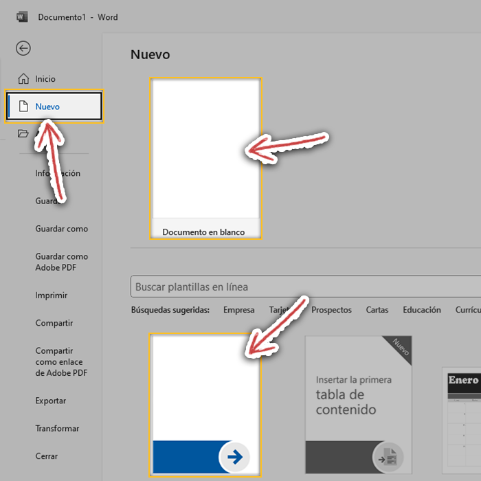 Lo primero que vamos a hacer es crear el documento. Para ello siga estos pasos: 1. Haga clic en "Archivo". 2. Luego, presione en "Nuevo", para crear un documento en blanco o elegir una plantilla. 3. Una vez creado el documento, se debe guardar; para ello, revise los pasos en la siguiente página.