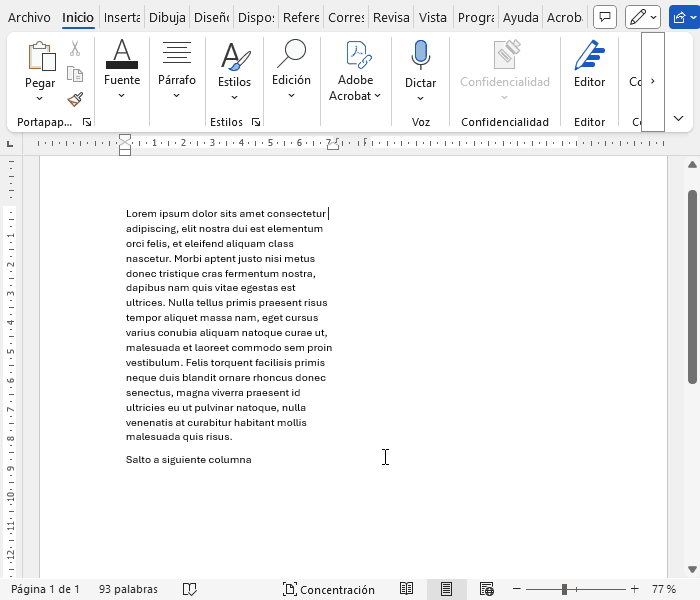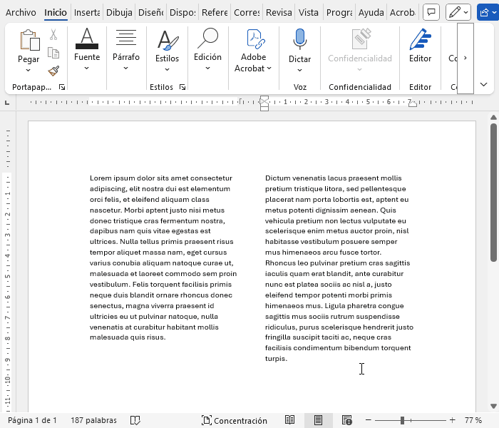 Para utilizar la función de columnas que ofrece Microsoft Word, se puede lograr de dos formas: