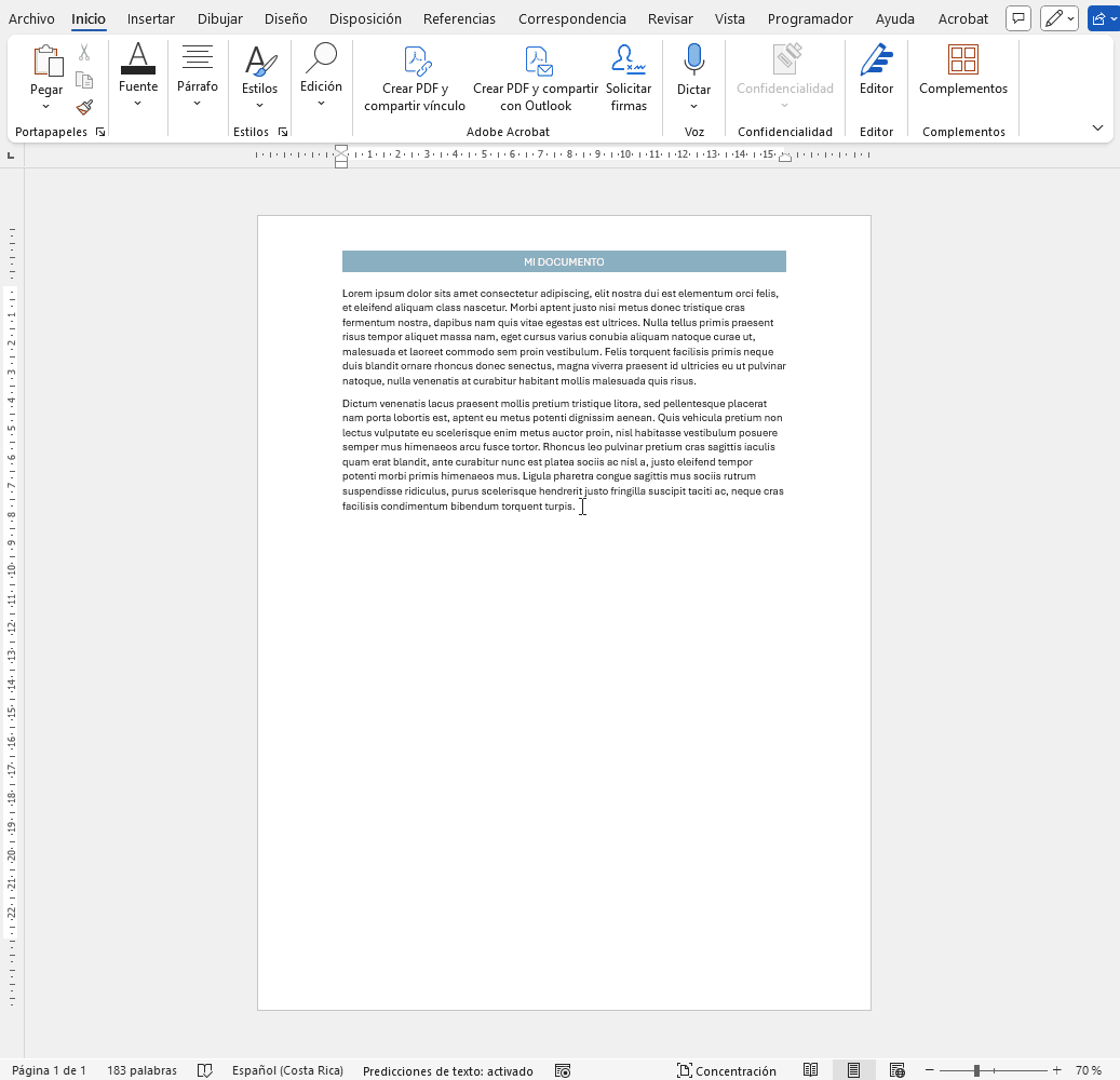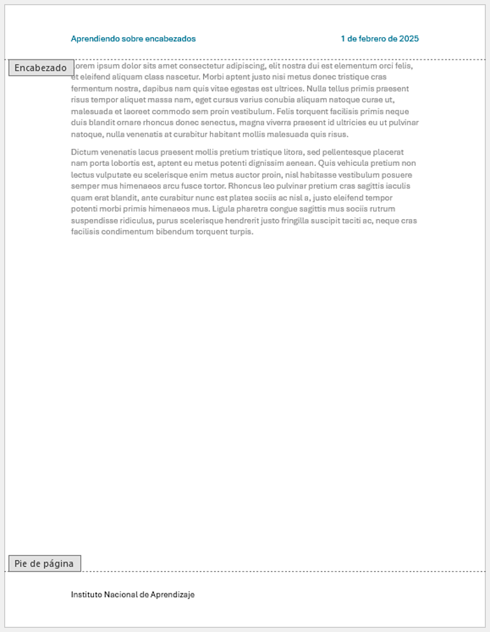 6. Si desea realizar cambios a los encabezados y pies de páginas, haga doble clic en el encabezado o pie de página, realice el cambio y vuelva al documento, dando doble clic en el documento.