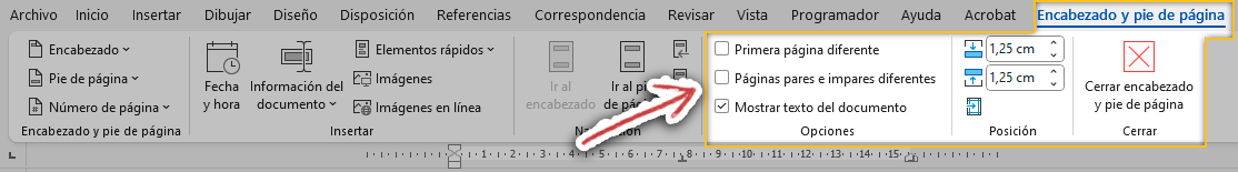 4. Escoger el formato que se desee para incluir el encabezado o pie de página.