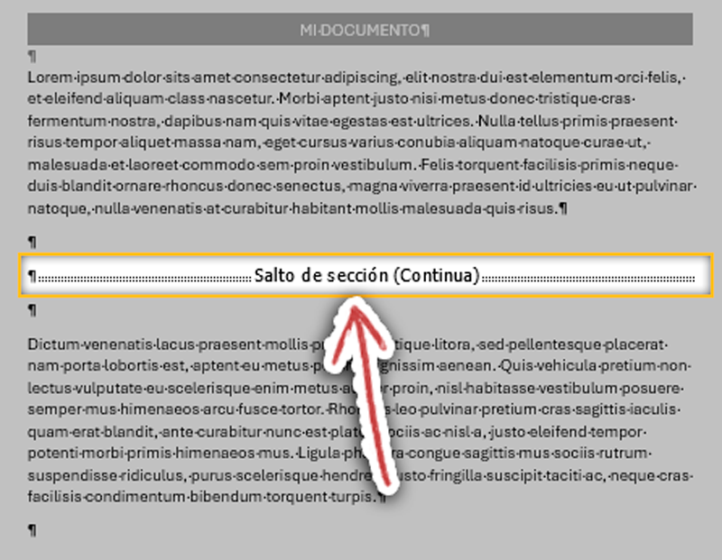 Los saltos de sección que se agreguen empezarán y terminarán con algo similar a esto:
