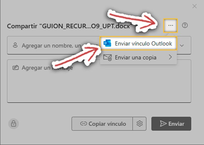 También se puede compartir el documento por correo. Esta opción se encuentra en los 3 puntos que usted puede observar en la siguiente imagen: