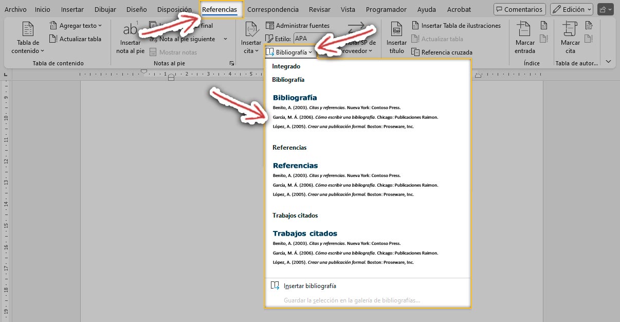 Microsoft Word tiene herramientas integradas para gestionar citas y bibliografías, las cuales facilitan mucho el trabajo.