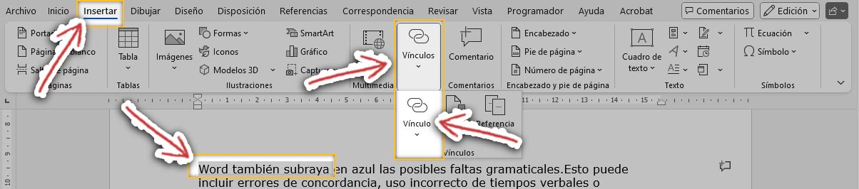 6. Para activar, posiciónese en el texto u objeto donde aplicó el Vínculo y presione las teclas: