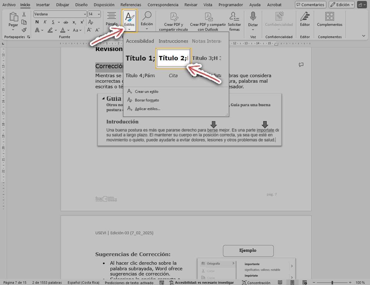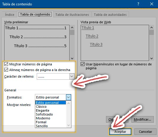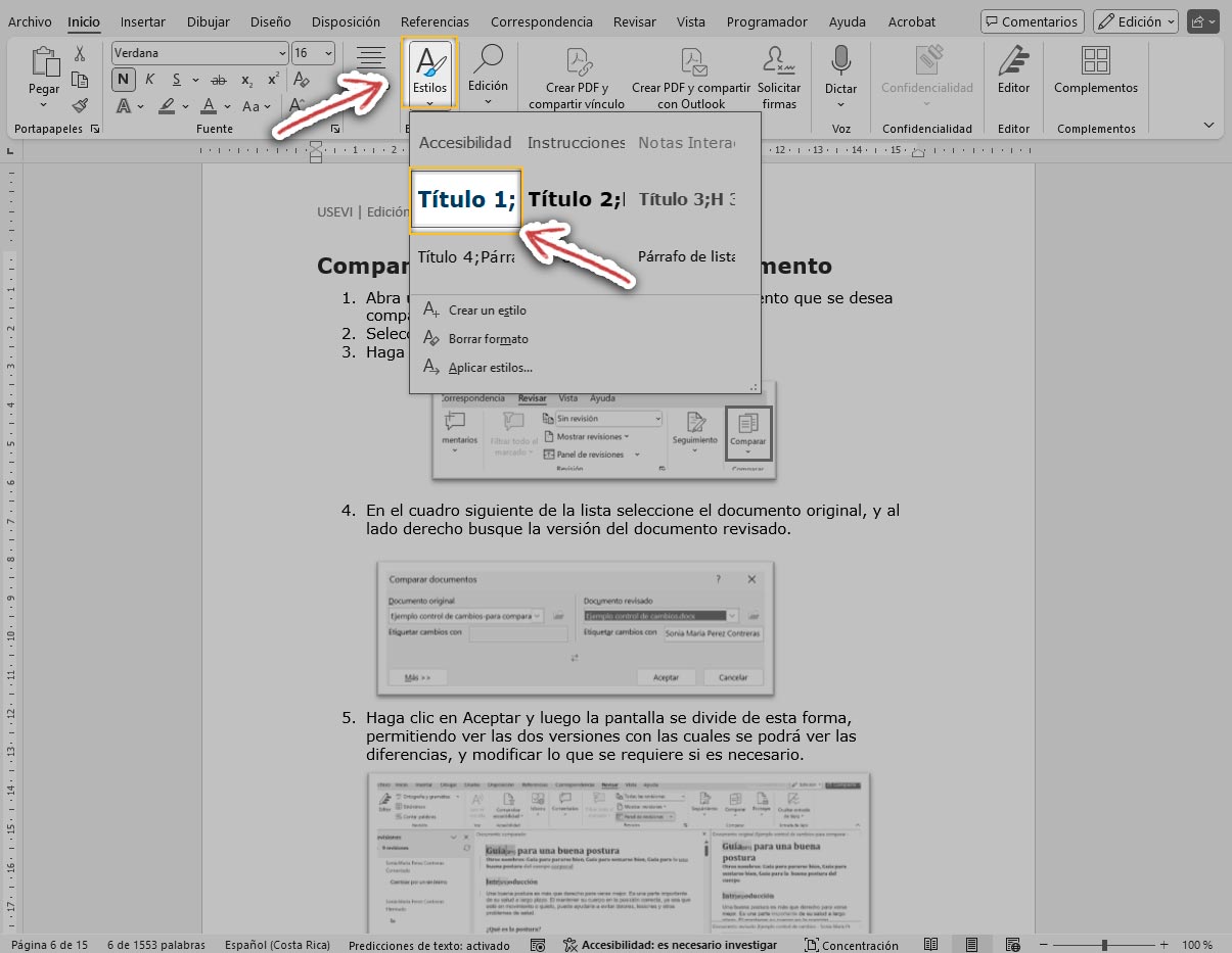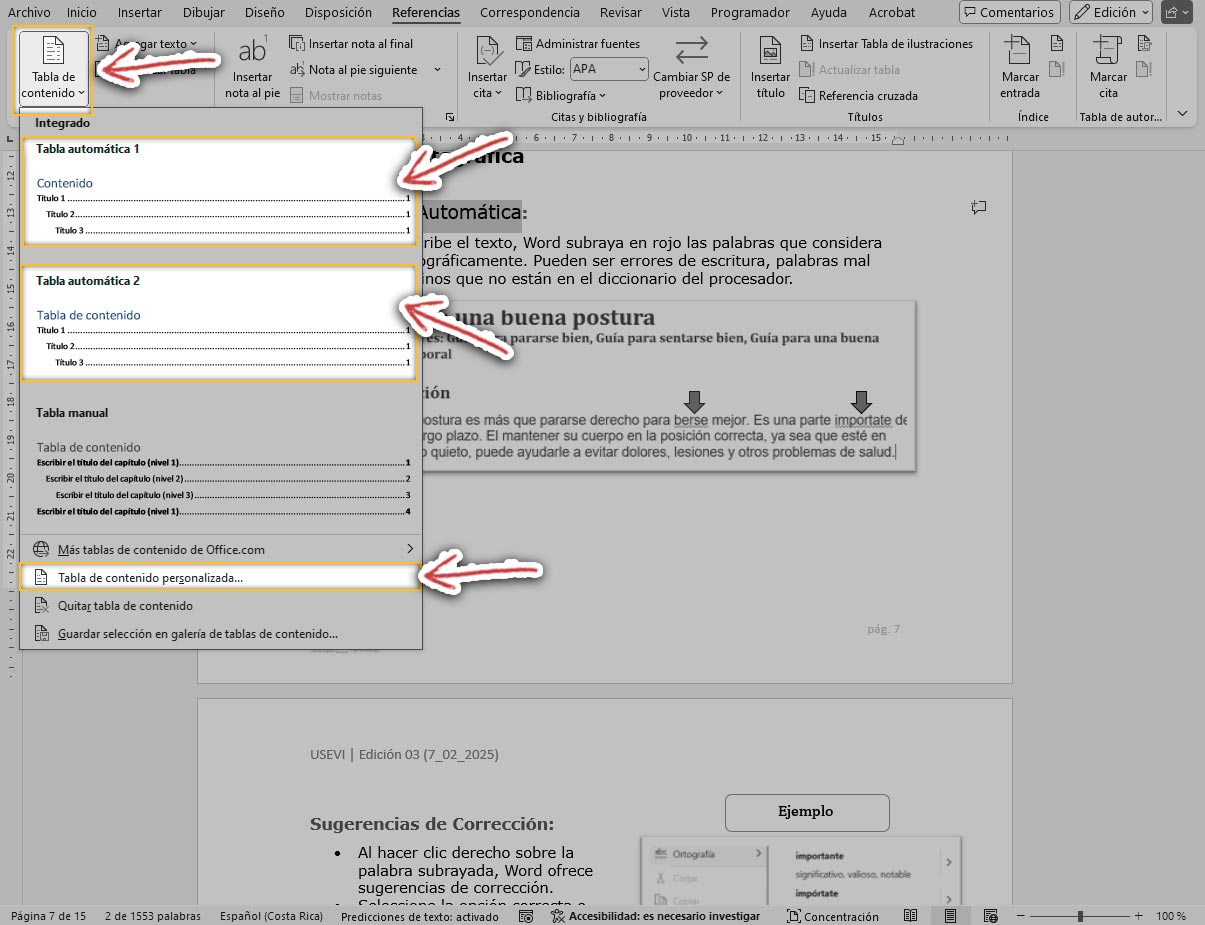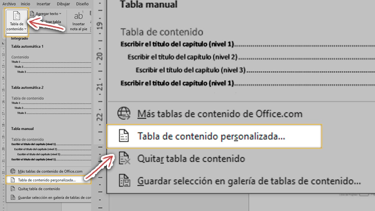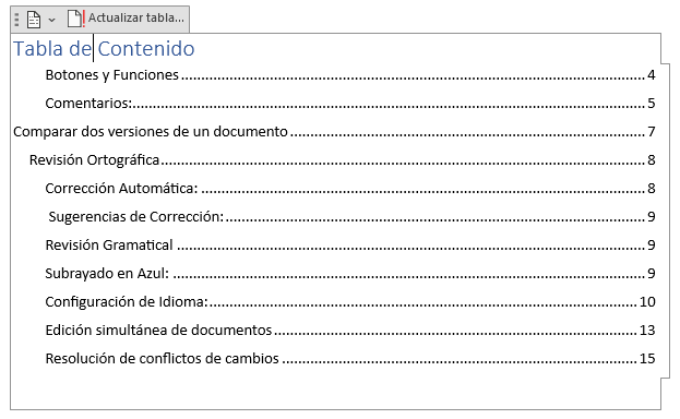 Para crear una tabla de contenido de forma automática, se debe aplicar antes a cada título el estilo Título 1, y a subtítulos el estilo Título 2.