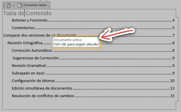 Una Tabla de contenido es una lista de títulos y subtítulos que se encuentran ubicados en un documento. Las páginas pueden estar enumeradas o no. Cada título y subtítulo tendrá un enlace que lleva al contenido de cada uno. Lo normal es que se coloque al principio del documento, ya que es lo primero que observamos. Eso ayuda a saber de qué trata el documento.