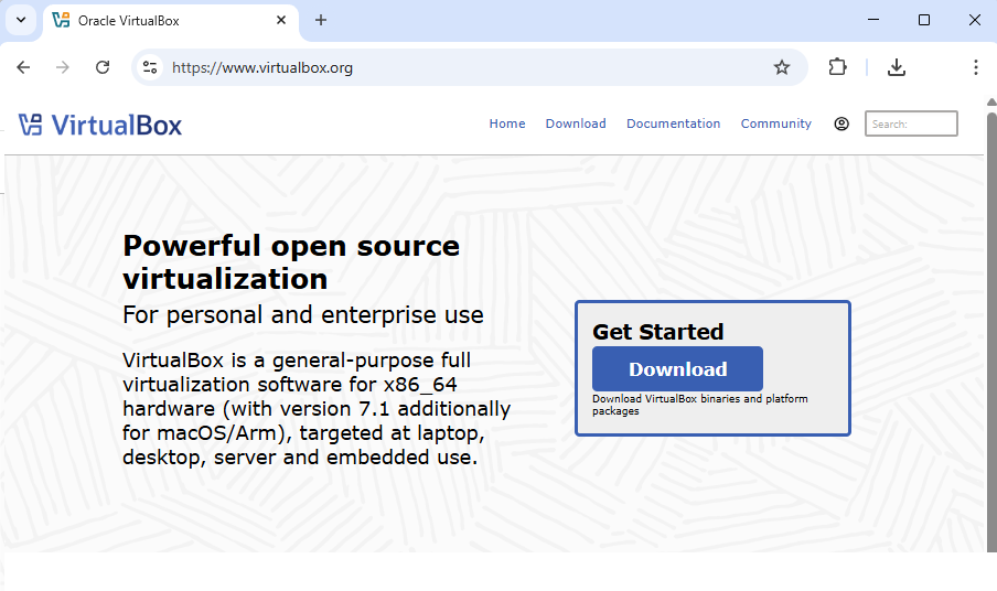 Para comenzar, debemos descargar la aplicación VirtualBox desde el sitio oficial https://www.virtualbox.org/.
