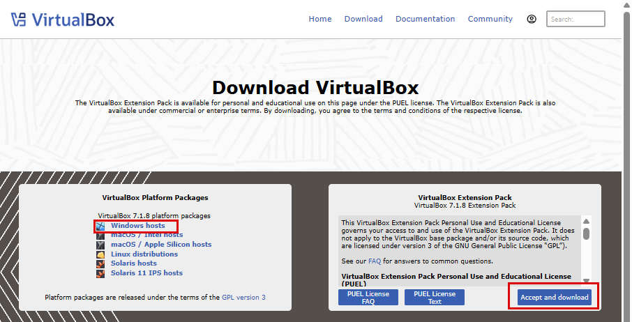 Después, aceptar y descargar el paquete de extensión (Accept and download).