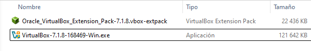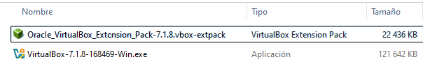 En el Explorador de archivos de Windows ubique el archivo VirtualBox Extension Pack y ejecútelo.