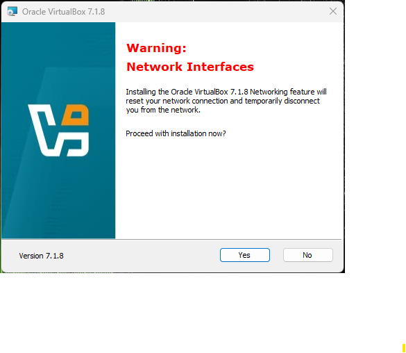 A la ventana emergente con una alerta sobre una desconexión temporal a la red y si desea proceder con la instalación, responda con el botón Yes.