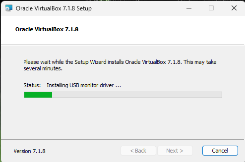 Al presionar Install se inicia el proceso y se visualiza una barra con el progreso.
