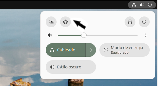 Para ajustar las propiedades como el tamaño y la ubicación del Dock es necesario acceder a la configuración. Una de las formas más rápidas para hacerlo es haciendo clic sobre los botones que se encuentran a la derecha del panel superior y seleccionar el que muestra un engranaje.