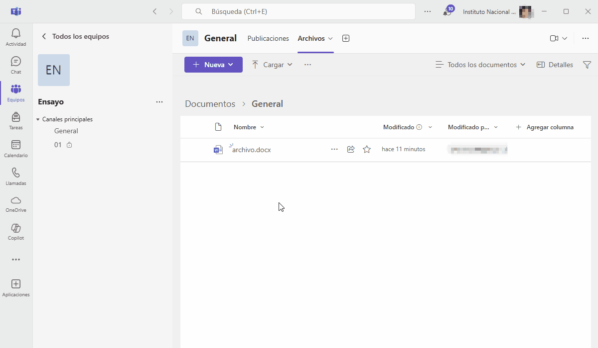- 1. Dentro del canal de Teams, ingrese a la pestaña "Archivos".