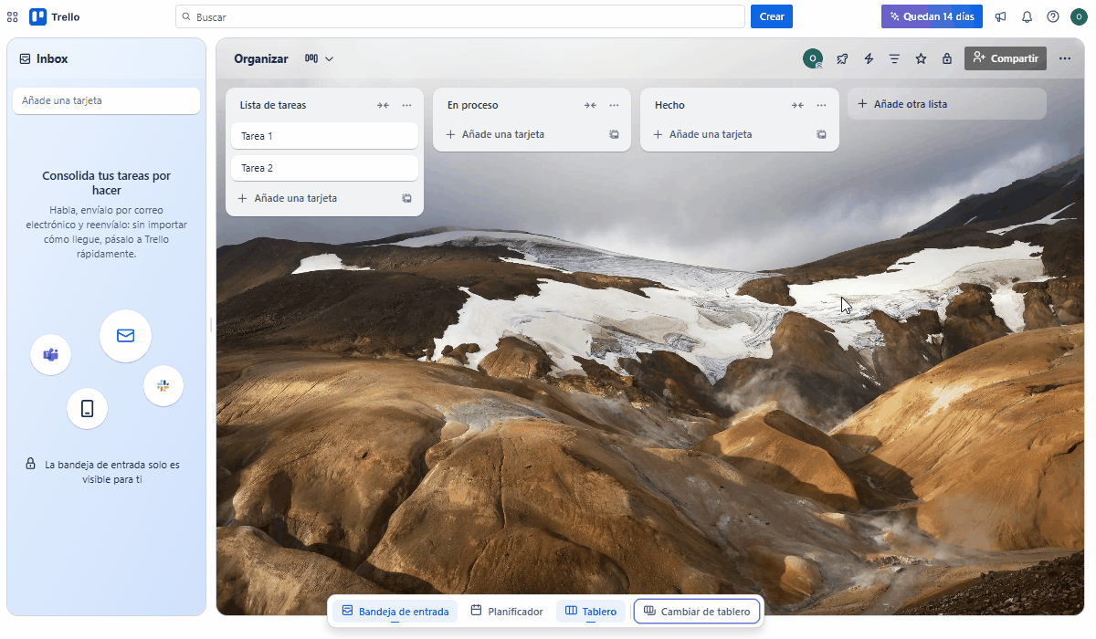 Una vez creado el tablero, se pueden crear listas al dar clic en "Añadir otra lista". Se asigna el nombre de las listas en función del flujo del trabajo, por ejemplo: "Por hacer" "En progreso" "Hecho"