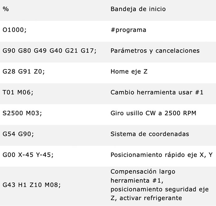 Aunque su contenido puede variar dependiendo del tipo de máquina y la operación específica que se realice, el encabezado incluye comandos y códigos que configuran el comportamiento de la máquina, para el trabajo que va a realizar.