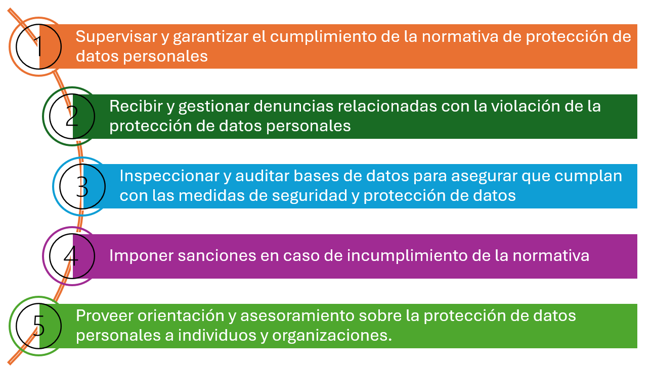 En todos los países donde existe normativa para la protección de los datos personales, como España, México, Brasil, y Panamá, se han creado agencias de protección de datos personales (ver link con información al respecto aquí), a las cuales les compete, entre otras funciones, que la ley de su país les otorgue al menos las siguientes atribuciones: