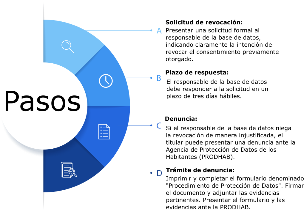 Estos pasos permiten al titular de los datos buscar la protección de sus derechos y asegurar que su solicitud de revocación sea atendida conforme a la Ley N°8968.