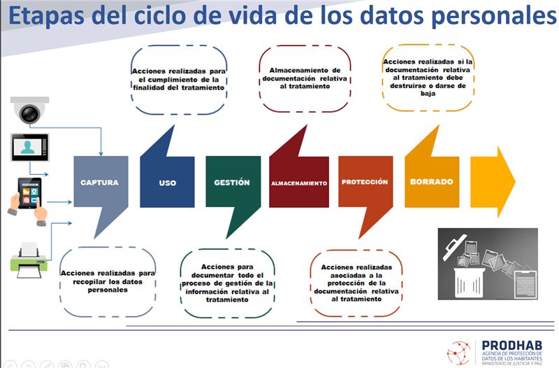 En la siguiente imagen podemos ver una representación del “Ciclo de Vida de los datos personales” presentado por la PRODHAB: