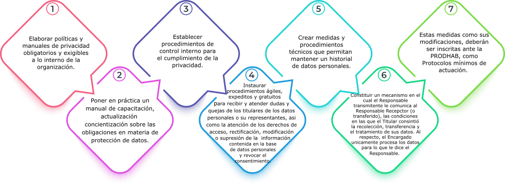 Por otra parte, el Responsable podrá emitir un protocolo de actuación, mediante el cual establecerán la reglas, procedimientos y otras disposiciones a lo interno de la organización, tanto para la recolección o registro de datos personales, como para su tratamiento, procesamiento y almacenamiento.