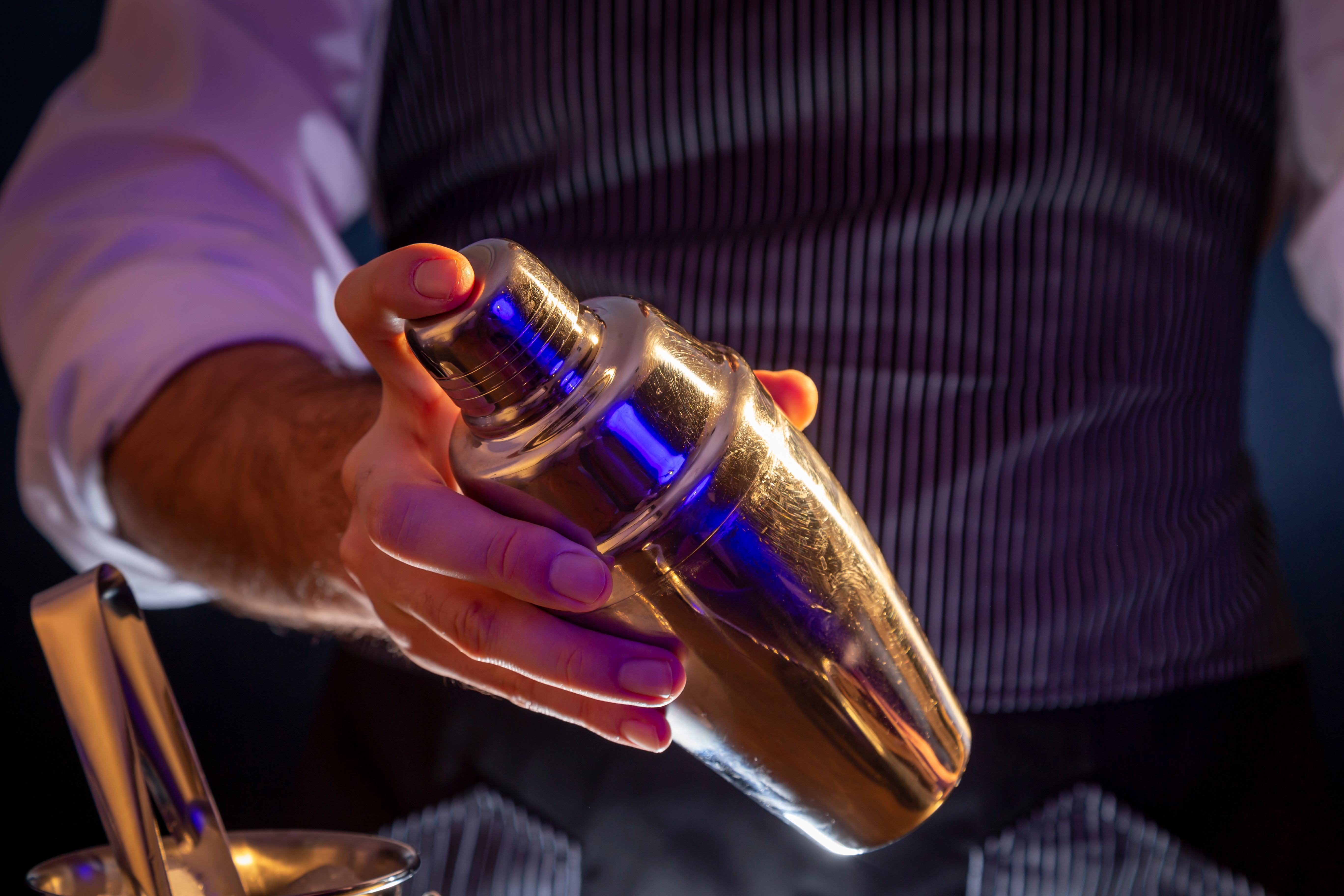 El secreto de la coctelera está en el agarre, esta debe sujetarse con ambas manos, de forma que la derecha sujete la tapa con el pulgar y el vaso con los otros cuatro dedos. La izquierda debe sujetar el vaso por debajo y con el pulgar el cubre vaso. Agítela con movimientos enérgicos y secos, a la altura del hombro y con la tapa mirando hacia usted.