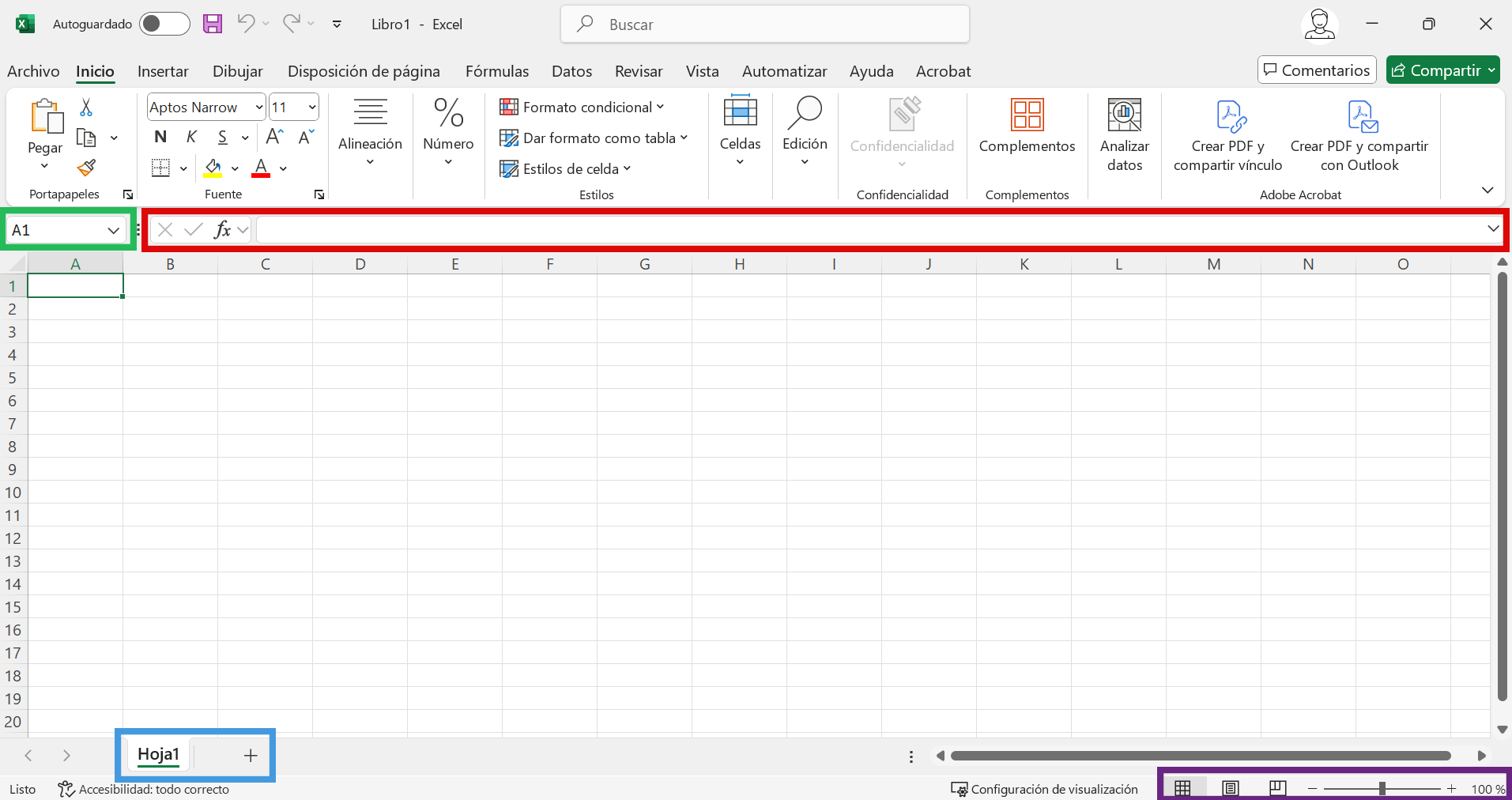 Es el espacio donde se encuentran las celdas y donde se realiza el ingreso y procesamiento de datos.