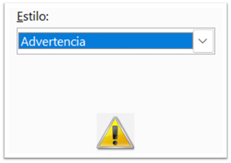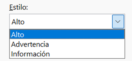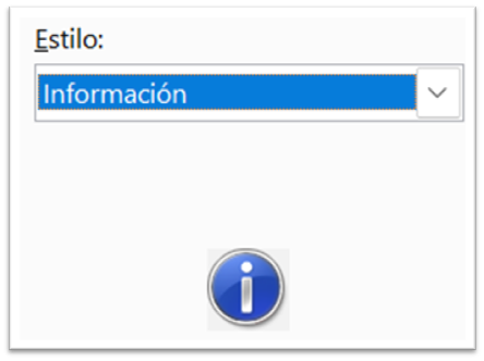 Información: Solo informa al usuario, permitiendo la entrada de datos no válidos. Muestra un icono de "i" azul.