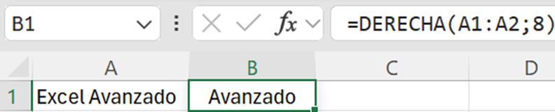 Ejemplo: Si en A1 tienes "Excel Avanzado":