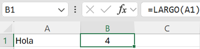 =LARGO(texto)Ejemplo: Si en A1 tienes "Hola":