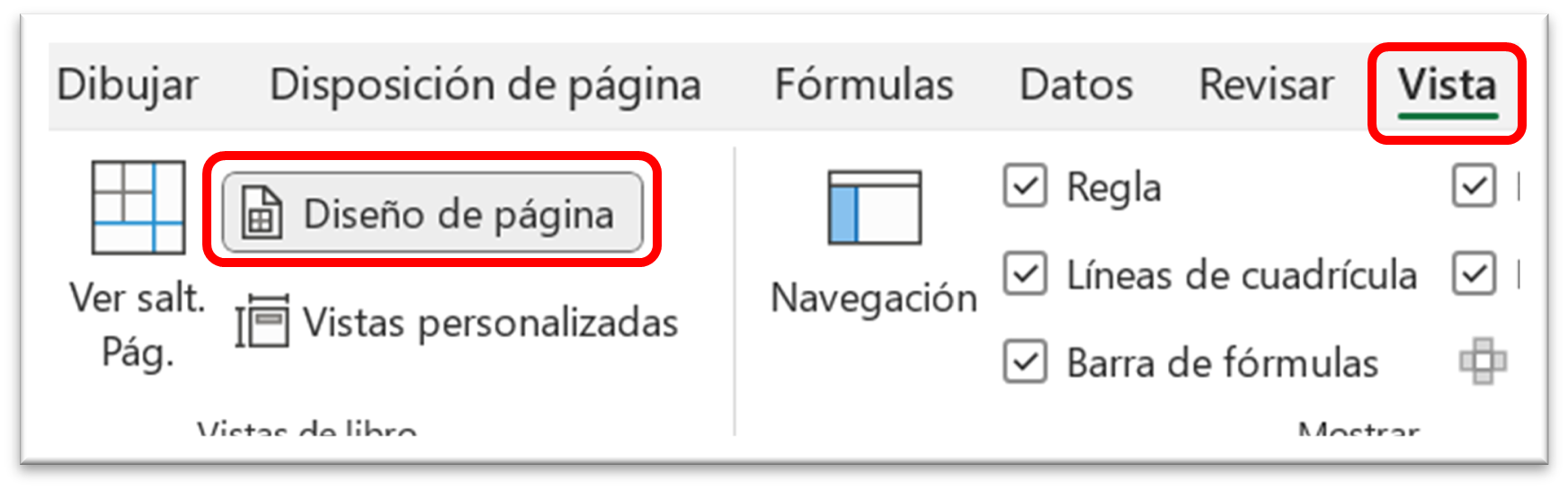 1. Vaya a la pestaña Vista y seleccione Diseño de página. Esta es la vista más fácil y recomendable para trabajar con encabezado y pie de página.