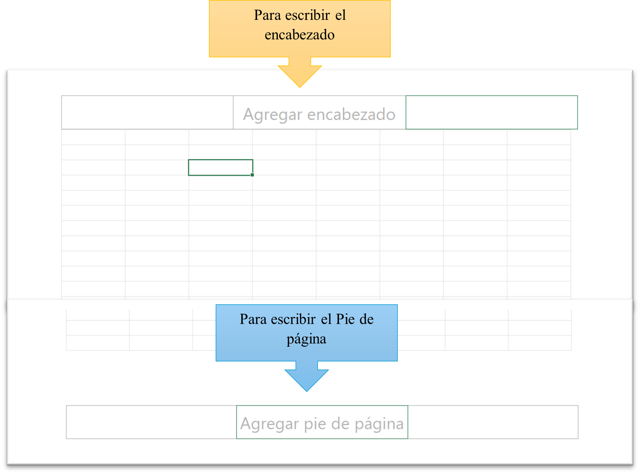 - Lo mismo aplica para la parte inferior, donde encontrará los recuadros para el pie de página.