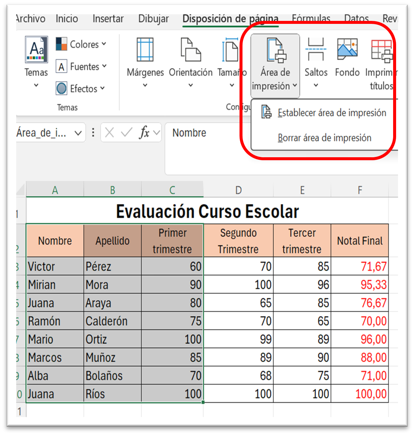 Esto permite imprimir solo una parte específica de la hoja de cálculo, ignorando el resto.