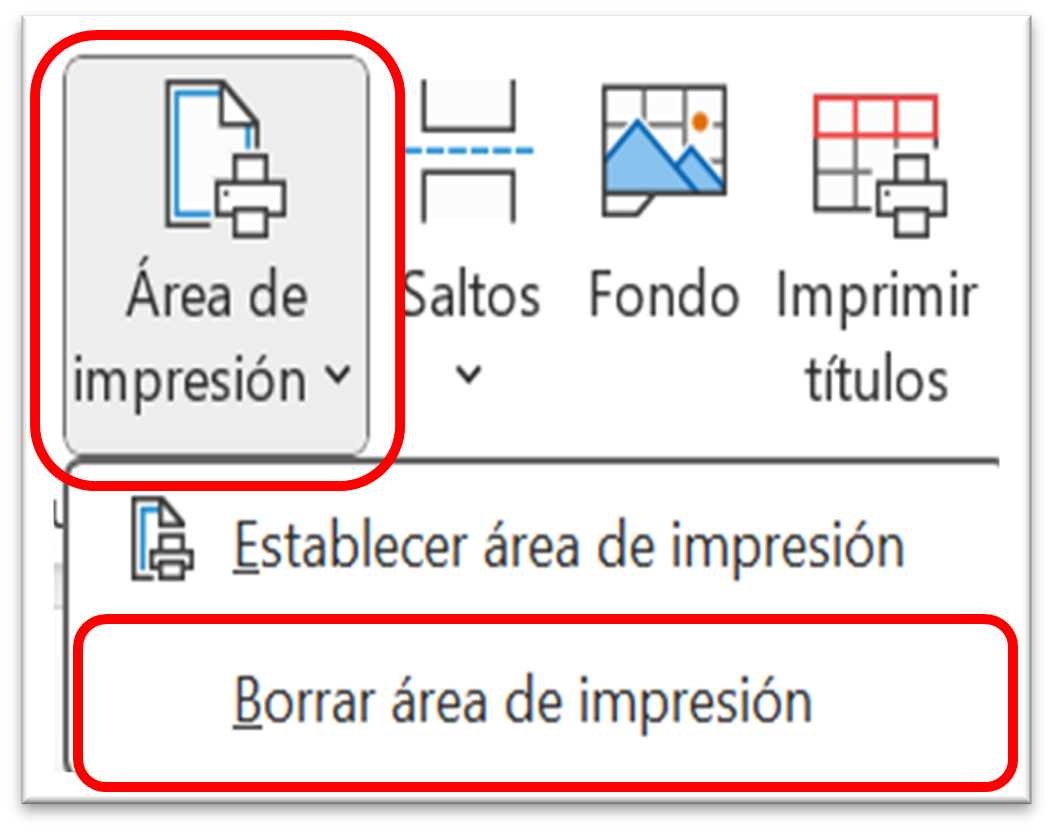 5. Para borrar el área de impresión, vaya a: Área de impresión y haga clic en Borrar área de impresión.