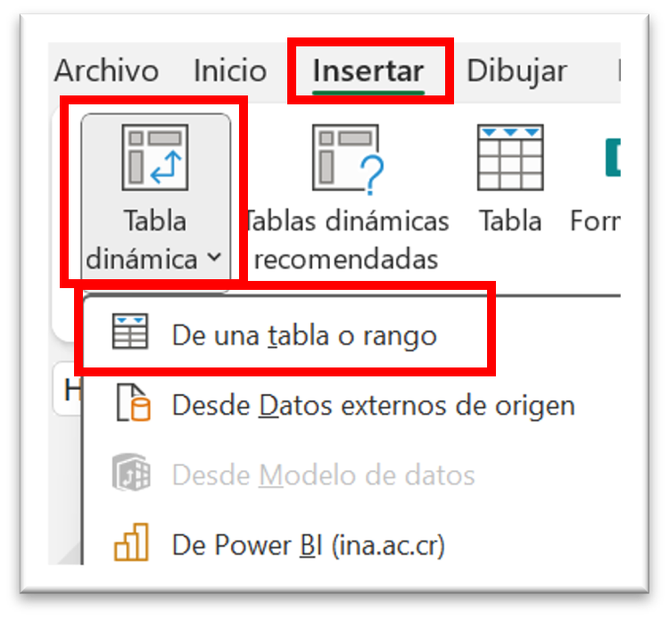 - 6. En el grupo "Tablas", haga clic en el botón Tabla dinámica. Se abrirá una ventana.