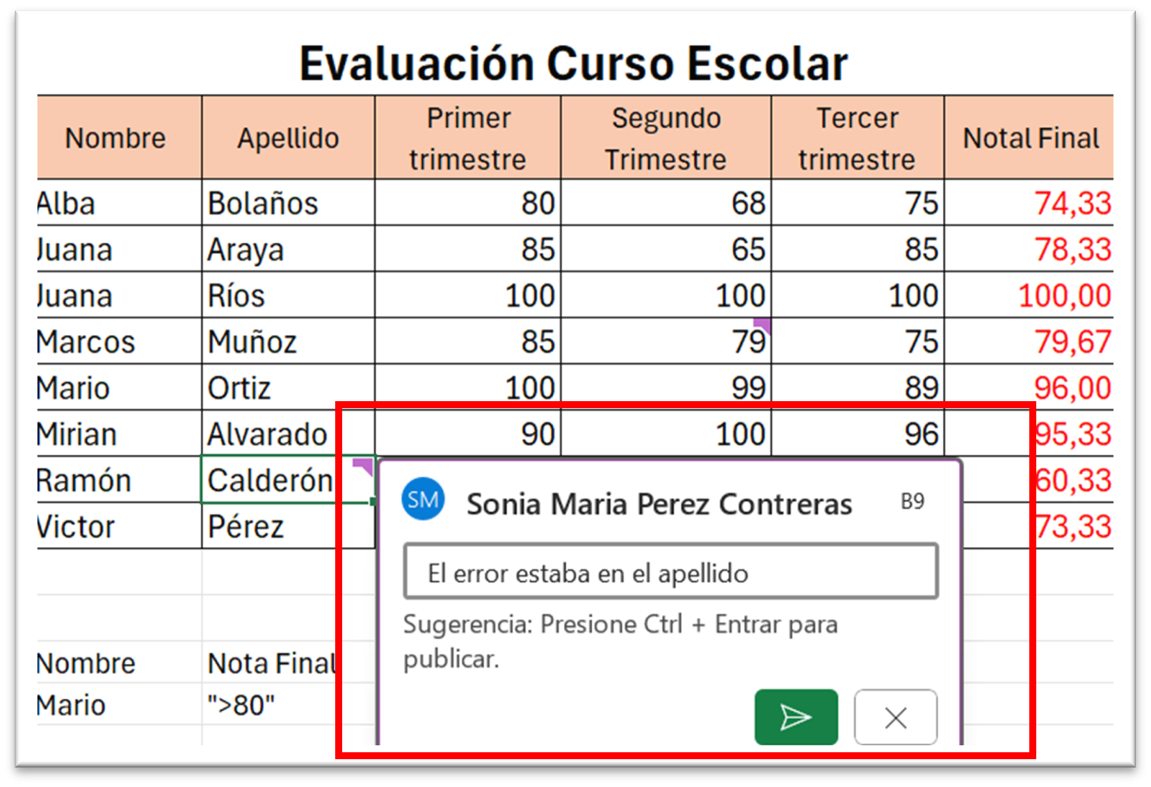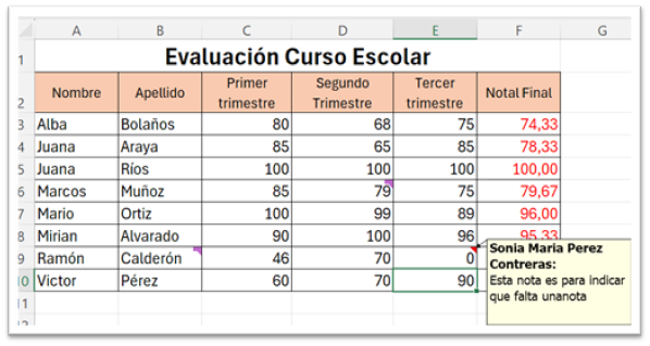 Notas: Se utilizan para agregar anotaciones simples a una celda. A diferencia de los comentarios, no permiten respuestas. Son como un recordatorio o una breve explicación de los datos.