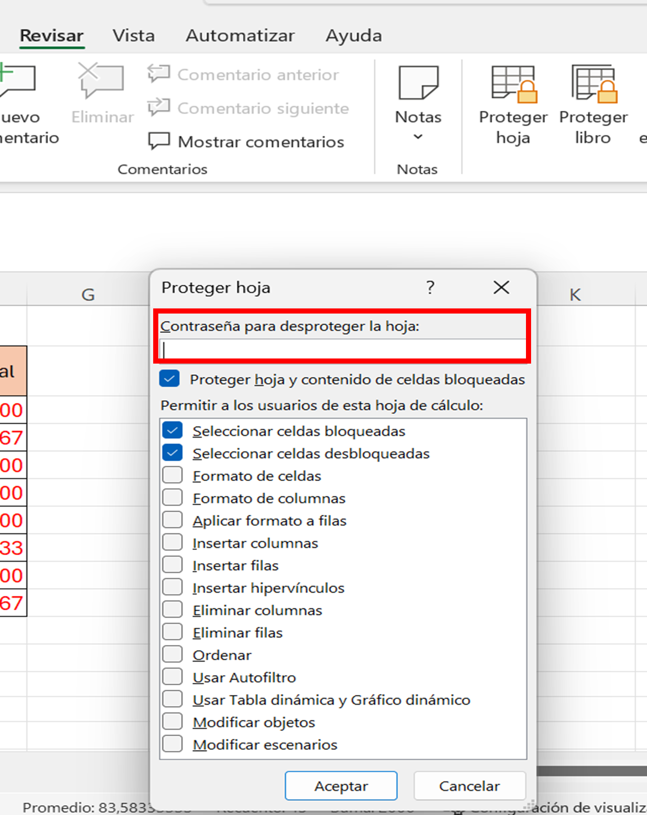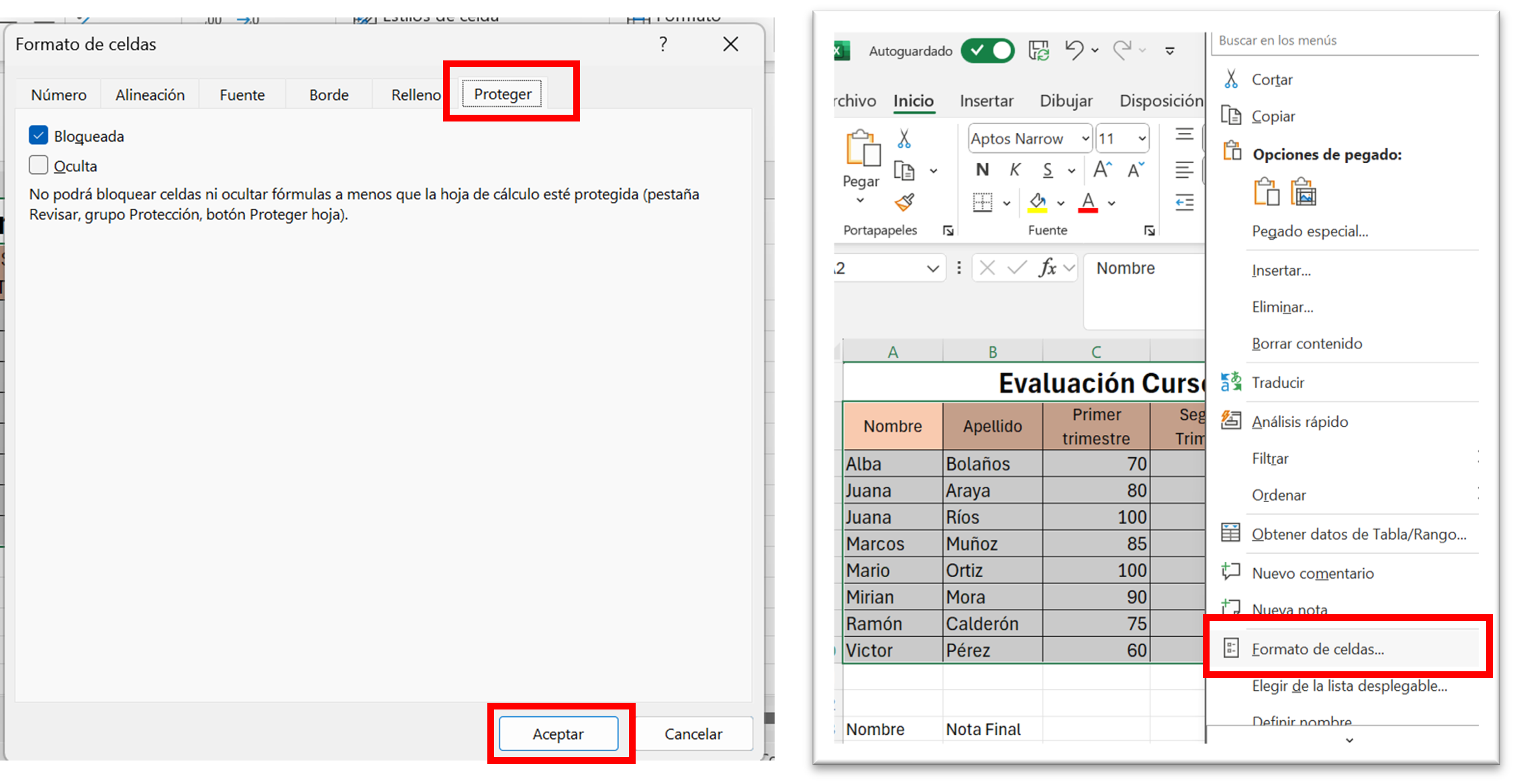 Para proteger solo ciertas celdas, debe seguir estos pasos: