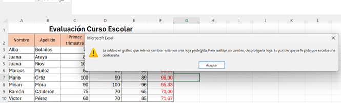 - 8. Cuando se intenta escribir algo en las celdas bloqueadas Excel da este mensaje: