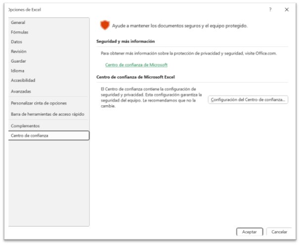 - - Habilitar todas las macros: Evite esta opción, ya que le expone a macros potencialmente peligrosas sin previo aviso.