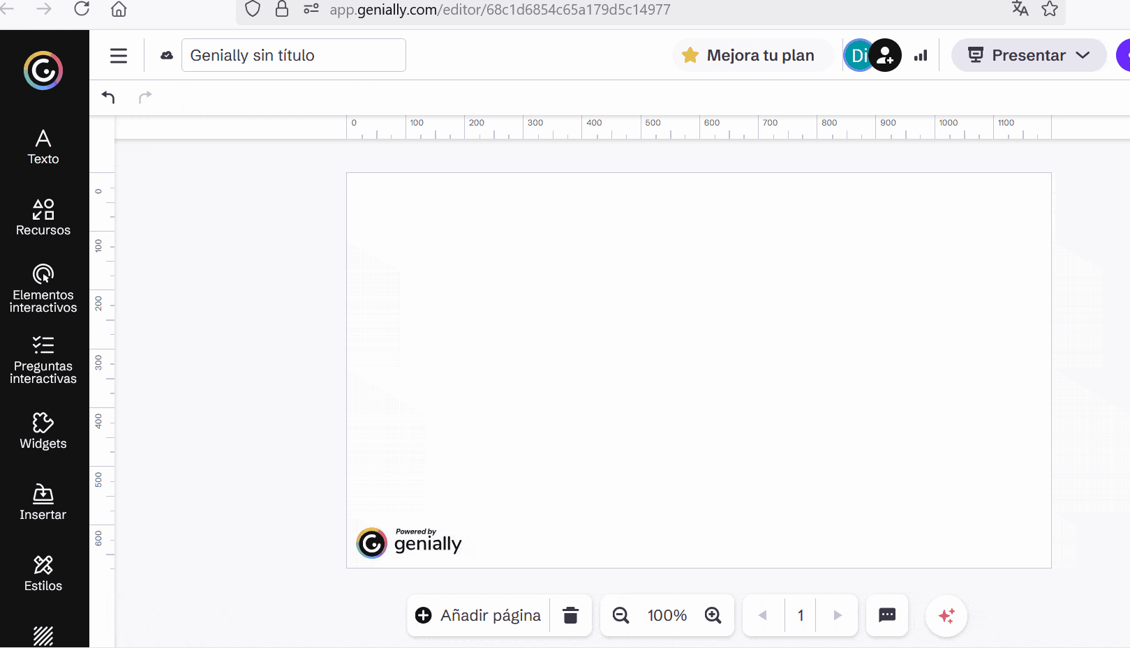 En Canva y Genially, se debe localizar la opción Agregar o Añadir una página dentro del panel de diapositivas.