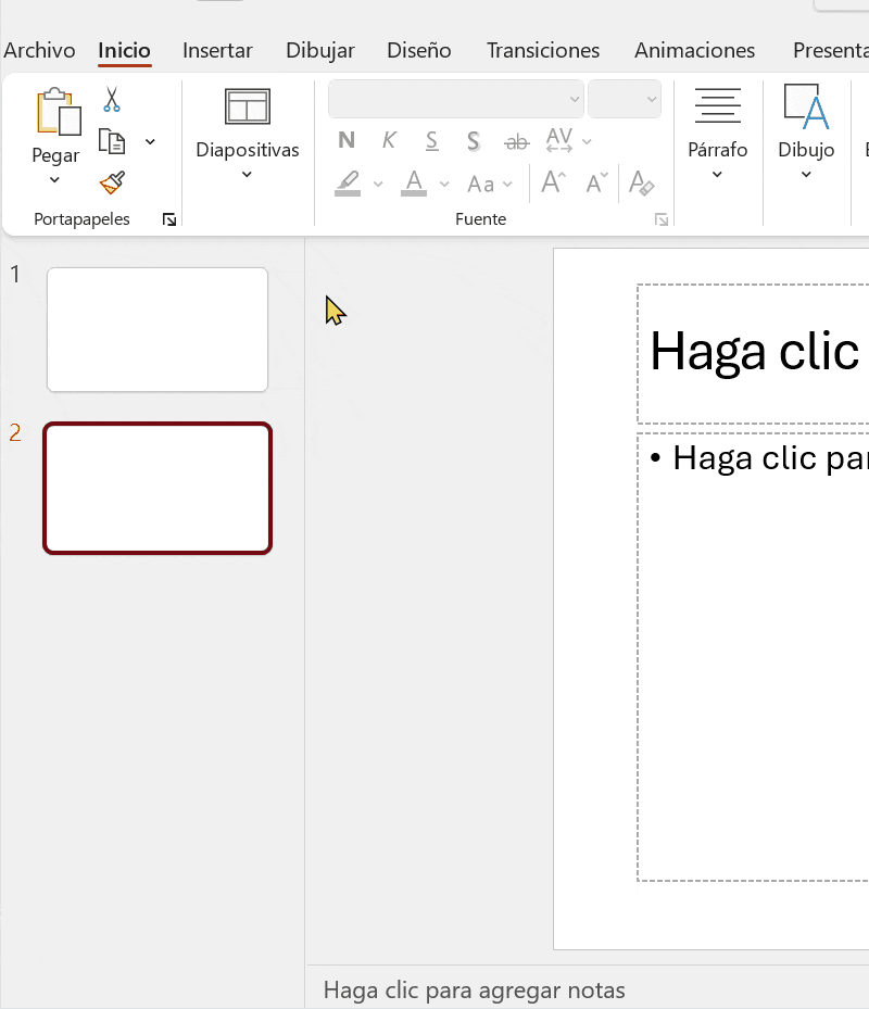 Este diseño es utilizado para iniciar una presentación o una sección dentro de la presentación, consta de dos cuadros de texto: en el primero de ellos se anota el tema central y el segundo sirve para agregar un subtema o realizar alguna especificación sobre el titulo principal.