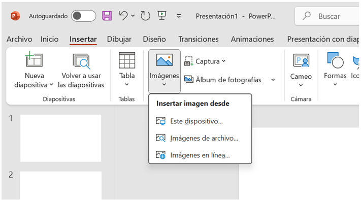 Al seleccionar la opción Este dispositivo… se abre una ventana de explorador, en la cual, puede navegar hacia distintas ubicaciones donde tenga almacenados archivos de tipo imagen e insertarlos directamente en la diapositiva.