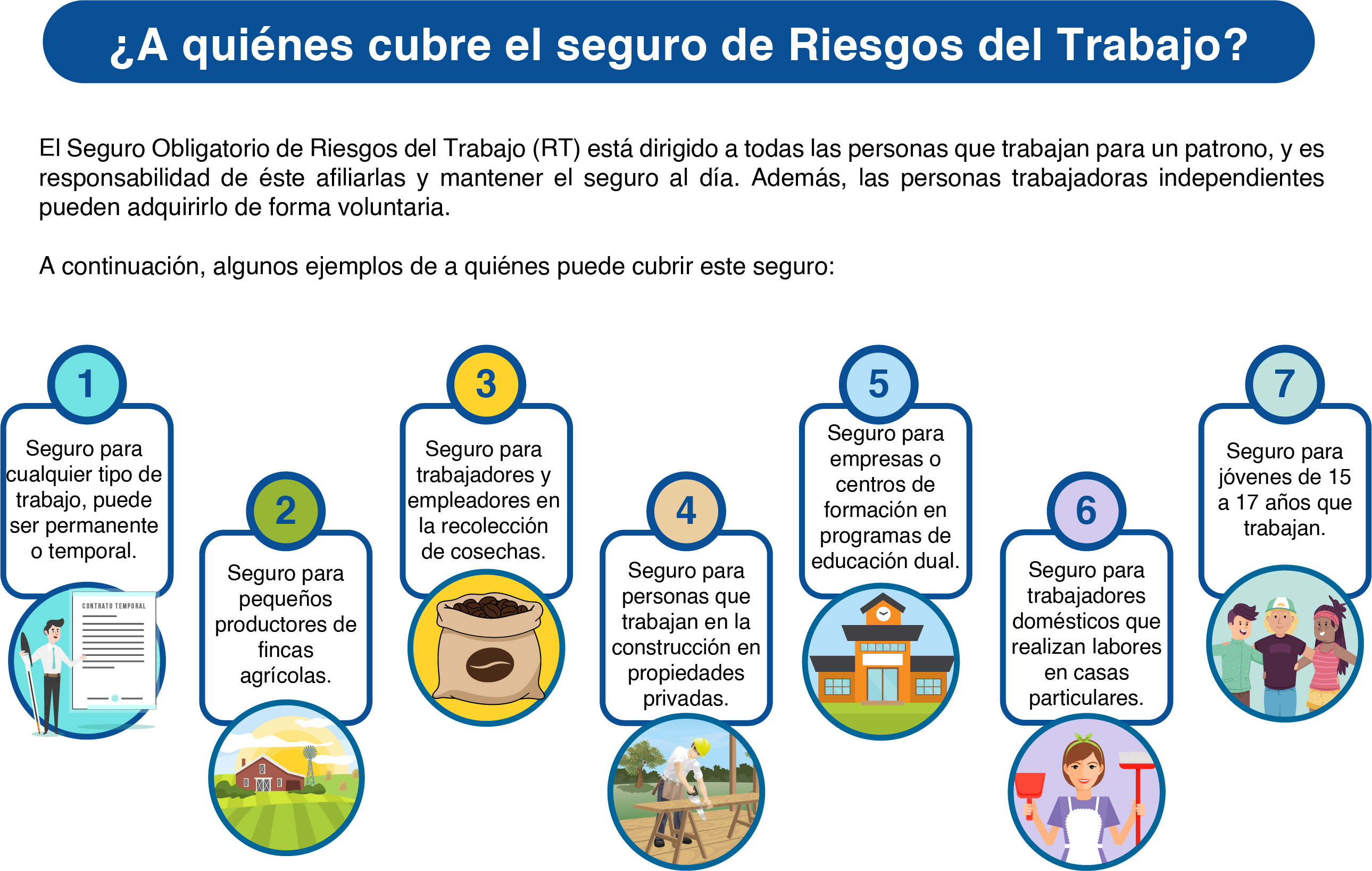 En este apartado podrá conocer sobre el seguro obligatorio de Riesgos del Trabajo (RT).